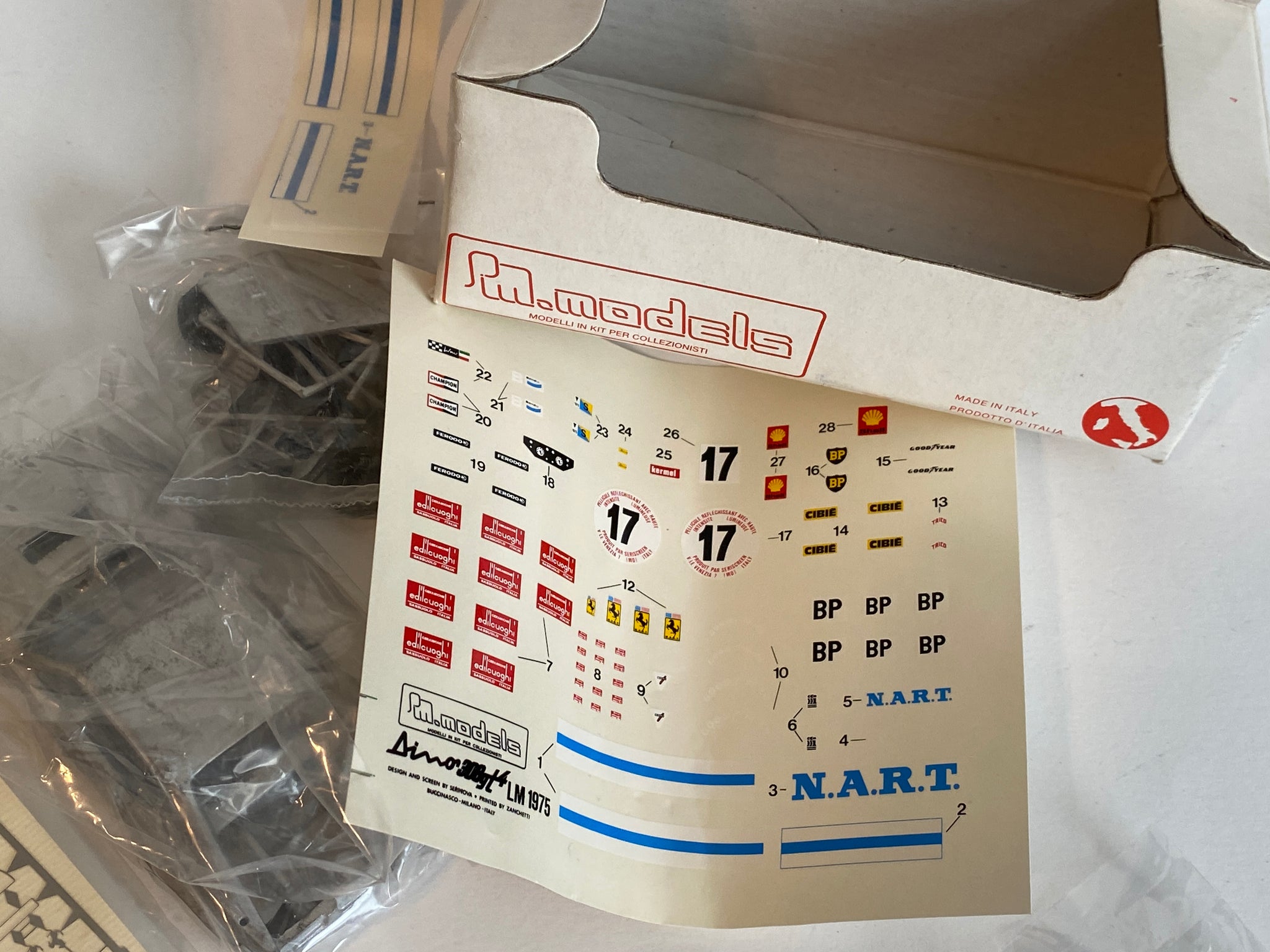 PM Models - 1/43 Ferrari 308 GT4 Le Mans 1975 white metal model kit. Very high quality easy to assemble model kit. All white metal model with all original parts and decals.